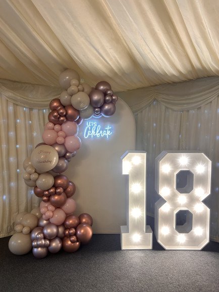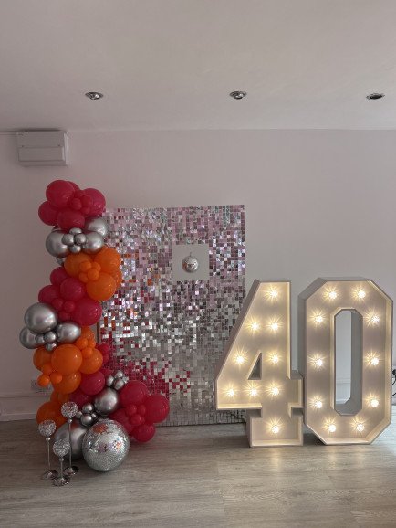 Our services include a stunning range of balloon displays and bespoke backdrops, eye-catching LED light-up numbers, glamorous shimmer walls, elegant cake stands, easels, floral arrangements, curated props, and beautifully crafted character cut-outs. Whether you’re dreaming of a chic, modern setup or a fully themed celebration bursting with colour and fun, we have the pieces and expertise to make it happen seamlessly.