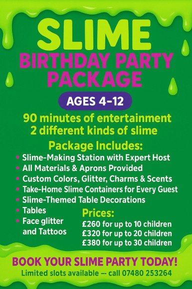 Spaces fill fast β reserve your date today and give your child an unforgettable, hands-on celebration full of colour, slime and smiles!